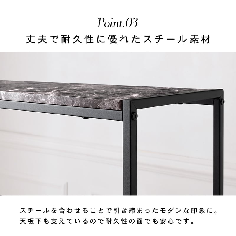艶のある大理石調シート天板が高級感を引き立て、リビングや寝室、玄関、店舗ディスプレイなど、あらゆる空間に調和します。
