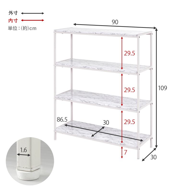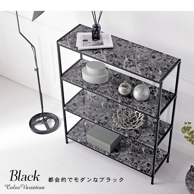 【即納】2colors*大理石調オープンラック 幅90 4段 棚 韓国インテリア 北欧インテリア スチールラック シェルフ モダン 高級感 ホワイト ブラック オープンシェルフ 収納 ディスプレイ棚 リビング 寝室 サロン 店舗什器