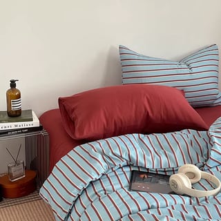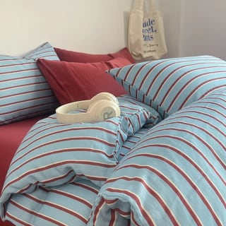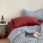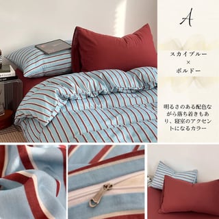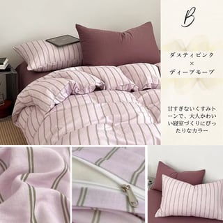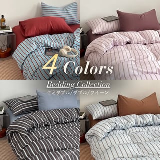 4colors/バイカラーストライブベッドシーツセット ストライプ柄 綿100% コットン セミダブル ダブル クイーン キング ピンク ブルー ブラック グレー ワインレッド 水色 韓国インテリア 北欧インテリア おしゃれ デザイン ベッドシーツセット 掛け布団カバー 敷布団カバー 枕カバー くすみカラー 寝具カバーセット 3点セット 4点セット 新生活 一人暮らし