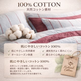 深みのあるグレー系ストライプに、やわらかなスモーキーブルーを合わせた洗練カラー。落ち着いた印象で、モダン・シンプル・ホテルライクな空間と好相性です。甘さを抑えたカラーなので、ユニセックスで取り入れやすく、スタイリッシュな寝室づくりにおすすめです。