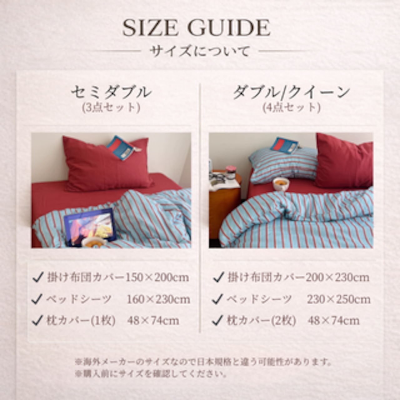 ・ダブル/クイーン(1.5-1.8m幅) 4点セット