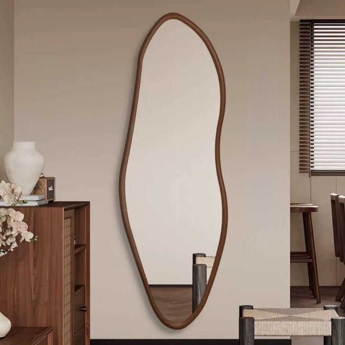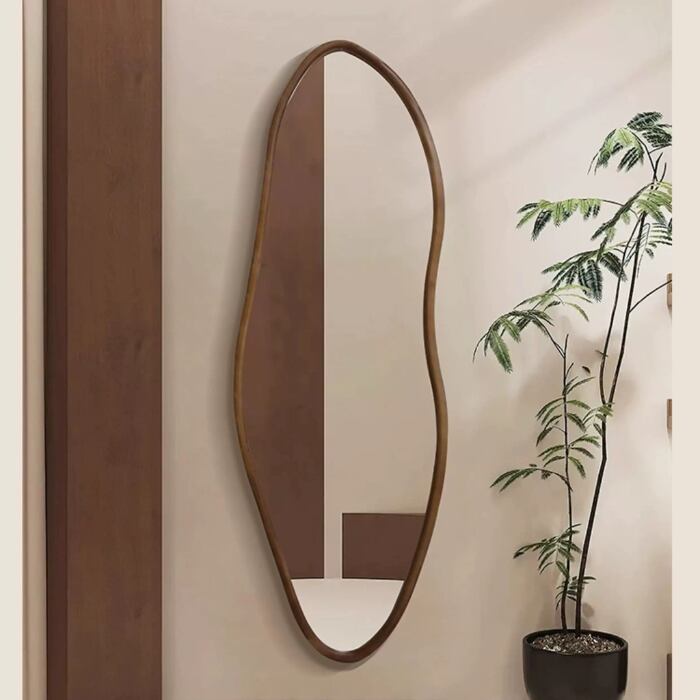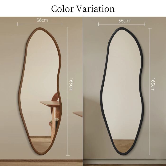 2colors/ウッドフレームニュアンスカーブミラー 全身鏡 ウェーブミラー 56×165cm 木製フレーム 壁掛けミラー 木製 ナチュラルインテリア 韓国インテリア 北欧 おしゃれ 姿見 大型ミラー アーチミラー スリム 飛散防止 ブラウン ブラック