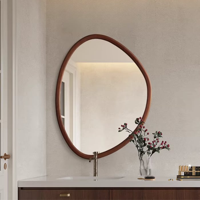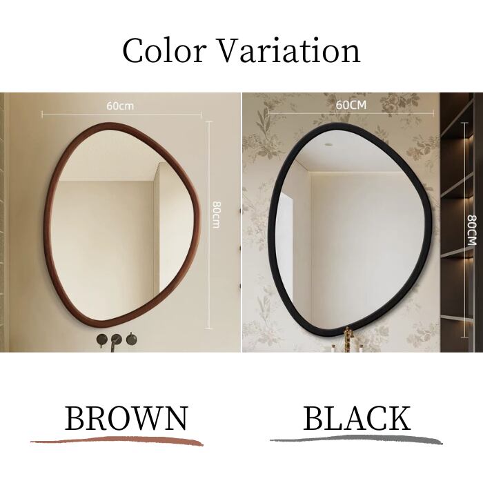 2colors/ウッドフレームニュアンスカーブミラー 壁掛けミラー ウェーブミラー 木製フレーム 60×80cm 変形ミラー ブラウン ブラック 韓国インテリア 北欧 おしゃれ ミラー 洗面鏡 デザインミラー 天然木 アオギリ 木製フレーム
