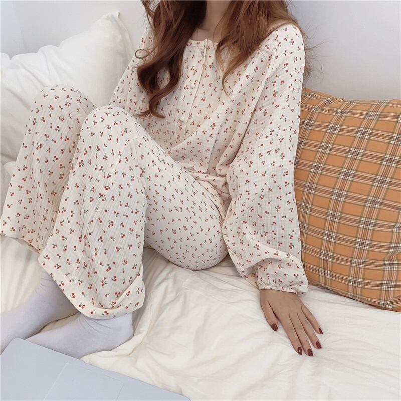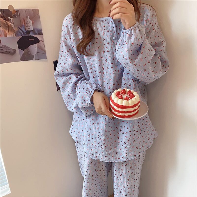 3color⋆チェリー柄 長袖ルームウェア セットアップ 上下セット