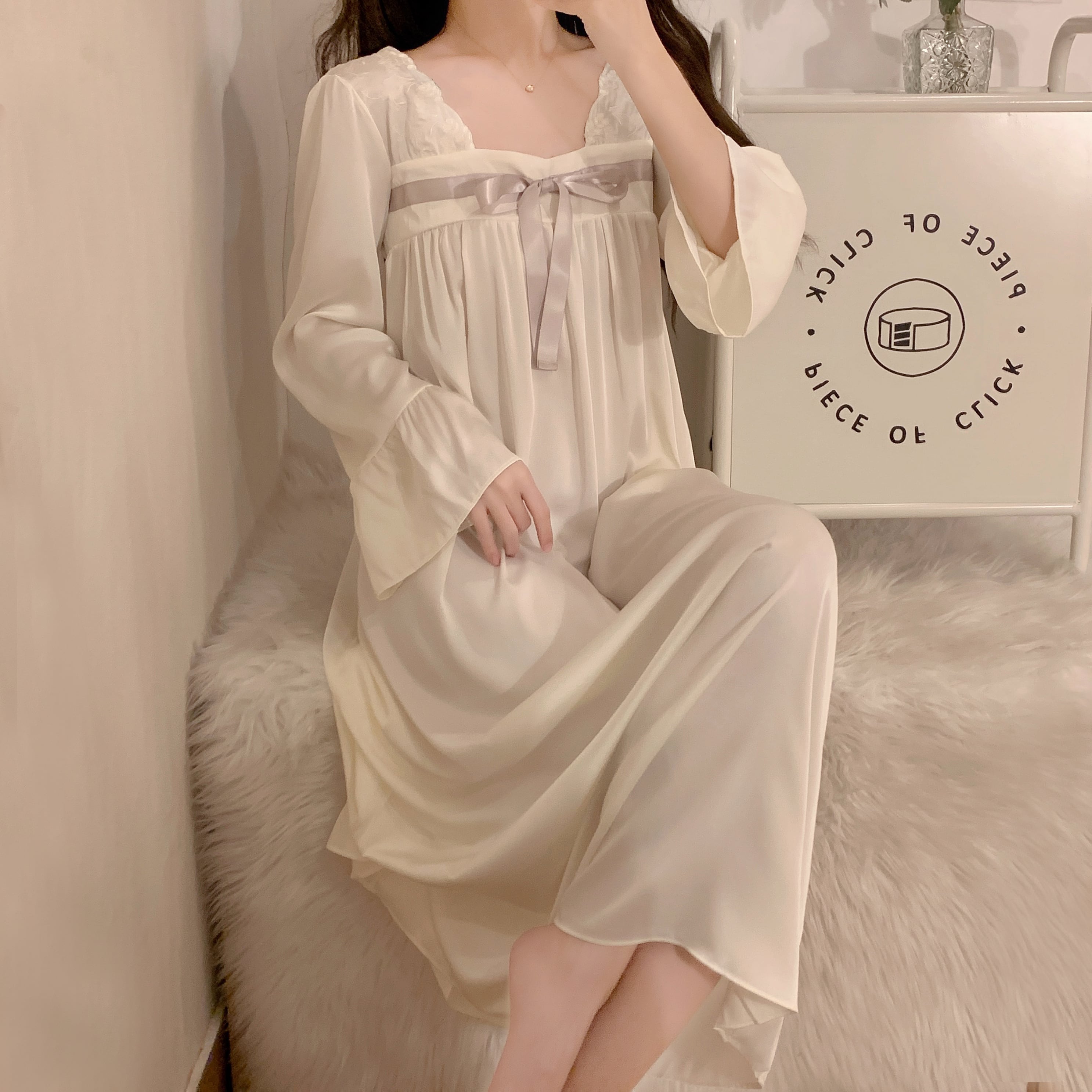 2color⋆S~Lサイズ有◎リボン シフォンワンピース ルームウェア ナイトドレス ネグリジェ