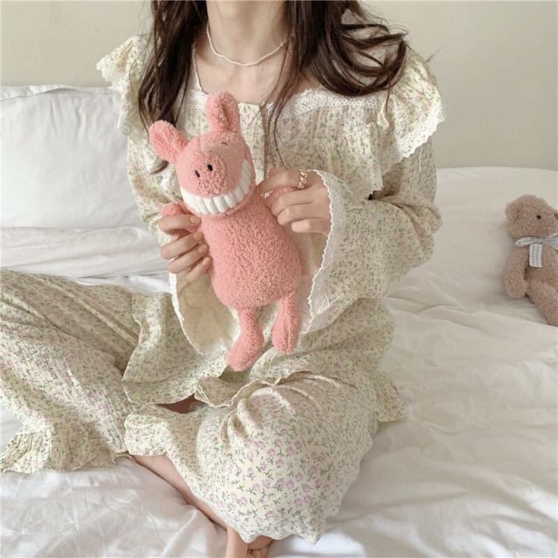 2color⋆フリルフラワールームウェア セットアップ 上下セット パジャマ