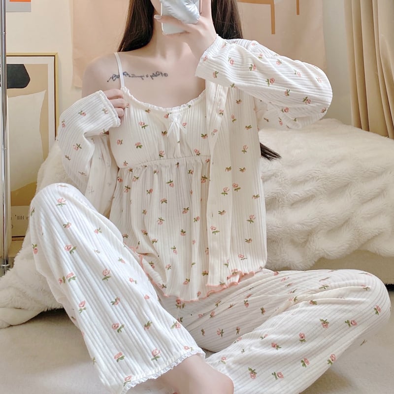 M~XXLサイズ有◎4点セット⋆花柄ルームウェア キャミソール パンツ ショーパン カーディガン 部屋着 韓国ファッション パジャマ