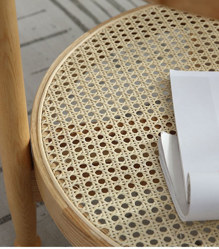 トレンドのラタンで編まれた下部の天板と美しい木目が特徴的な無垢材のフレームはアイテムにナチュラルな雰囲気だけなどこかオリエンタルな風合いをプラス。また、半透明のガラス天板をメインにデザインすることで、アイテムが決して野暮ったくなること無く、ナチュラルかつ現代的。日常にも馴染みの良い空間作りを叶えます。