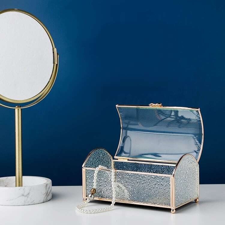 フタの部分は透明なガラスになっており、取り出したいアクセサリーをすぐに見つけられるのも嬉しいポイント。