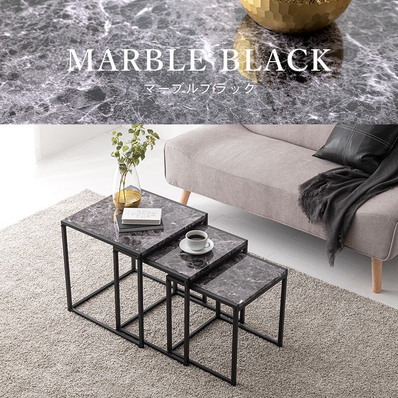 モダンな雰囲気の大理石調天板を使用したネストテーブル。角型3個セット