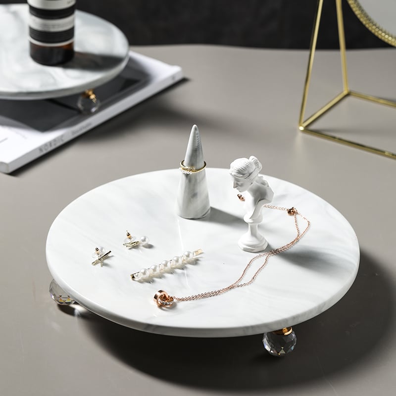 【予約特価】15cm/20cm/25cm 大理石柄プレート クリスタル 脚付き ビジュー脚 大理石柄 石ラウンドトレイ ディスプレイ 北欧インテリア 韓国インテリア