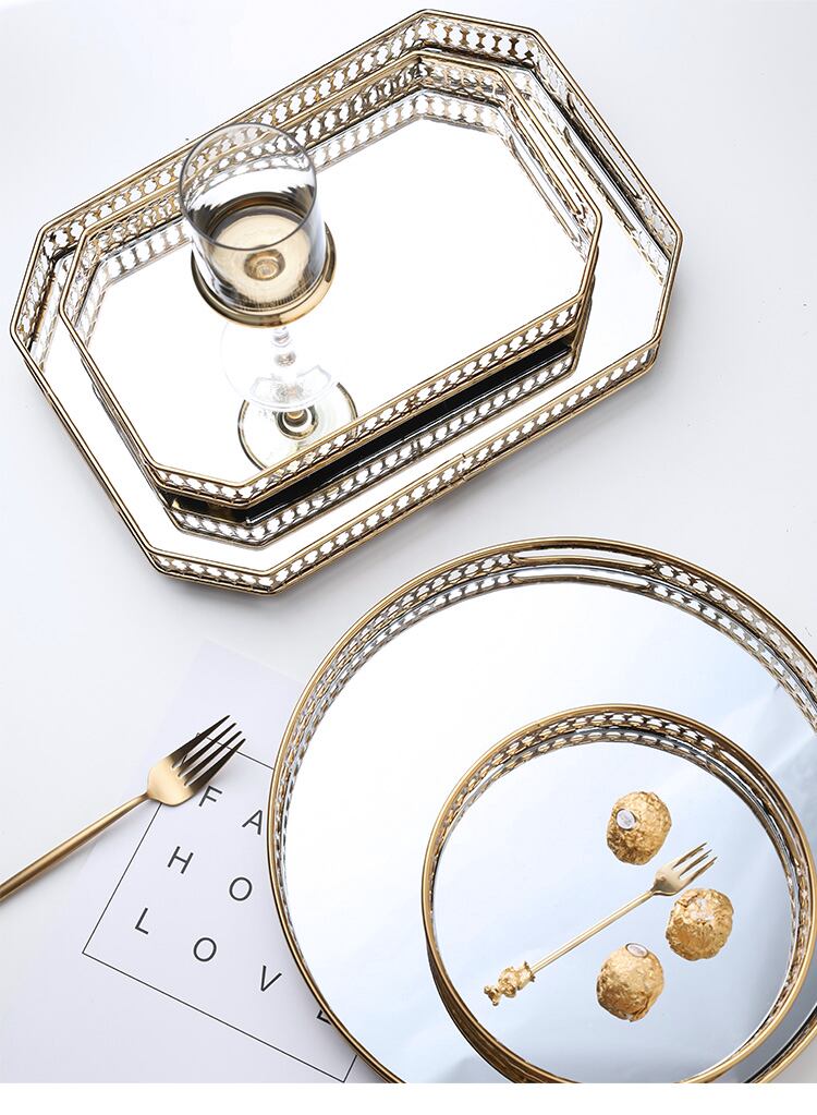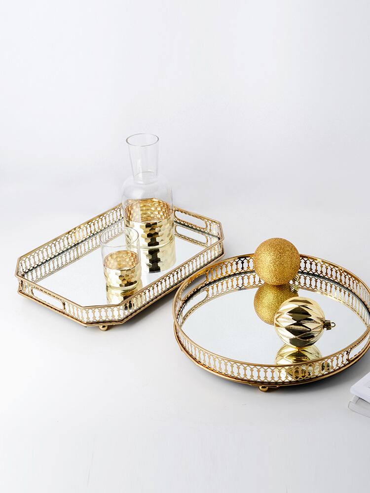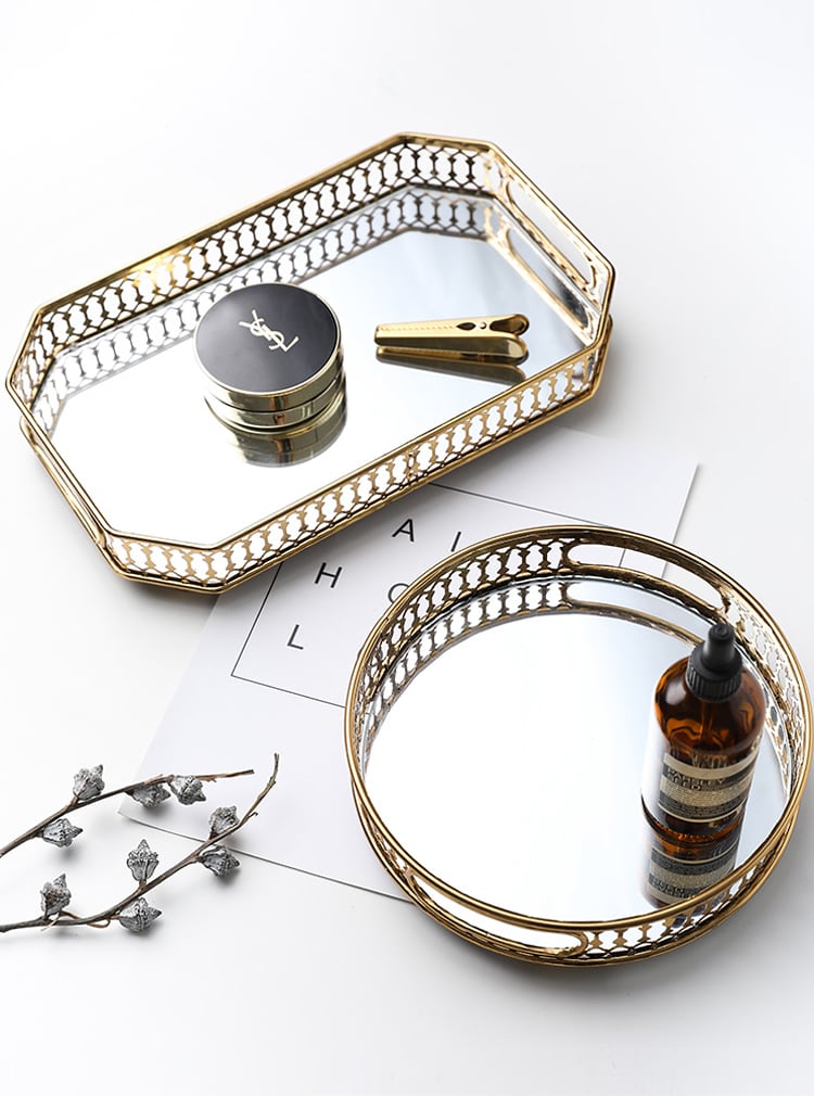 収納やディスプレイに落ち着きのあるゴールド×ミラーのトレイを活用
