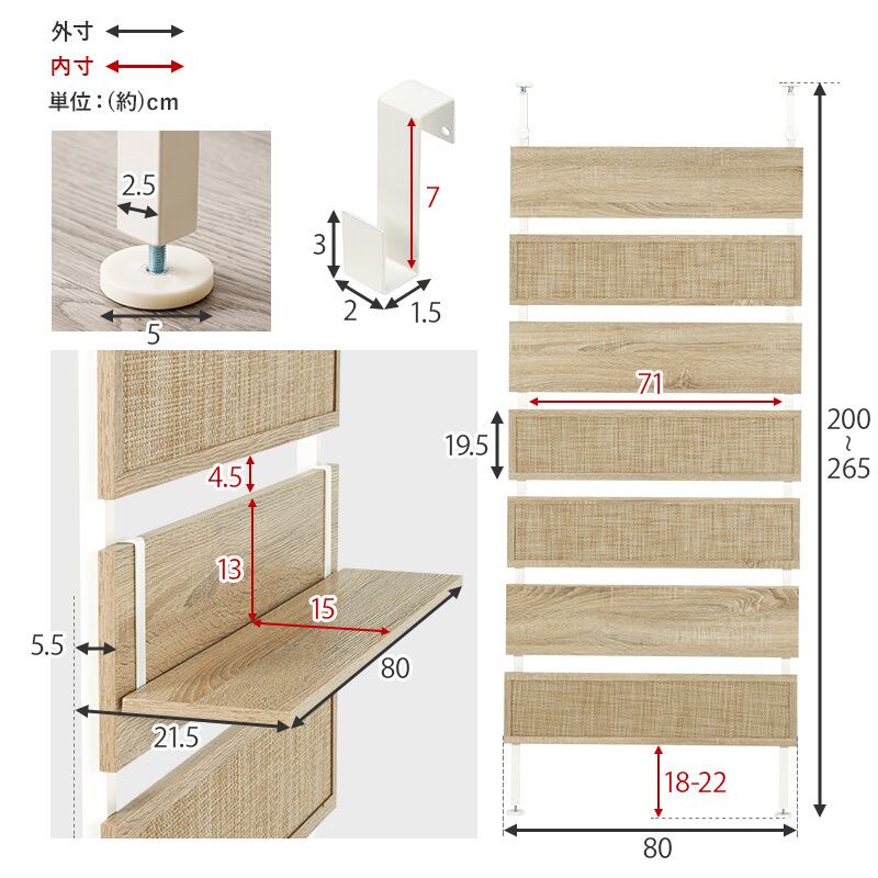 即納【幅80cm】ラタン調 突っ張りウォールラック おしゃれ ナチュラル 壁面のデッドスペースを収納スペースに有効活用 北欧インテリア 韓国インテリア
