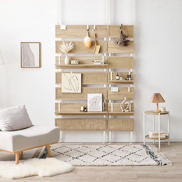 お部屋のいろいろな場所に設置できる突っ張り式ラック。