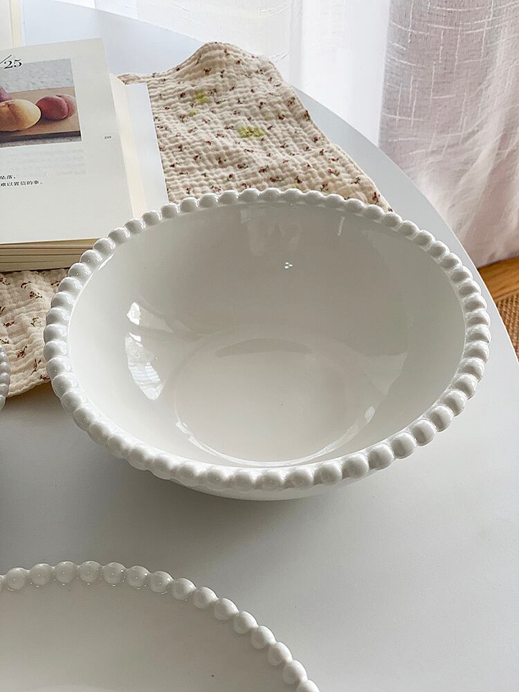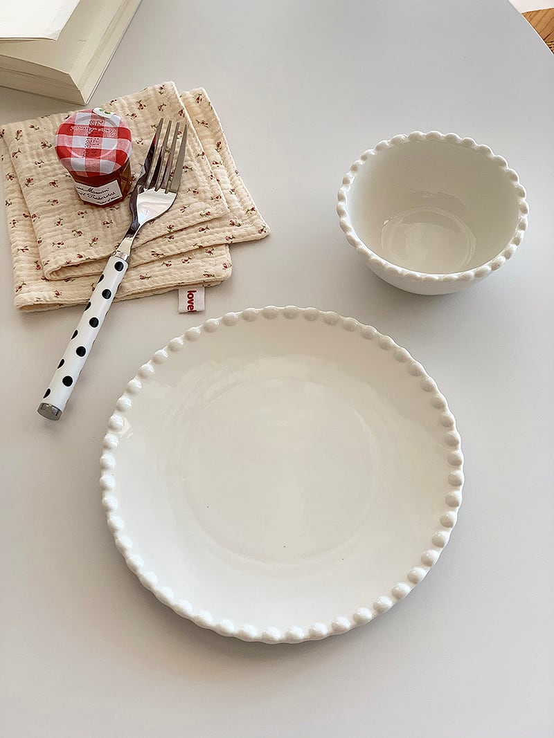 2colors/3type/エッジパールラインプレート お皿 お椀 ボウル 食器 アクセサリートレイ パール つぶつぶ ホワイト イエロー 韓国雑貨 デザート 韓国デザイン